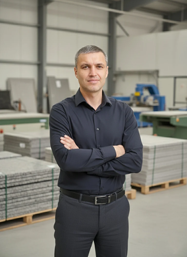 Мы начинаем с самого важного - тщательного отбора камня. Мы лично проверяем каждую плиту на наличие скрытых дефектов, трещин и соответствие цвету, чтобы быть уверенными в ее долговечности.