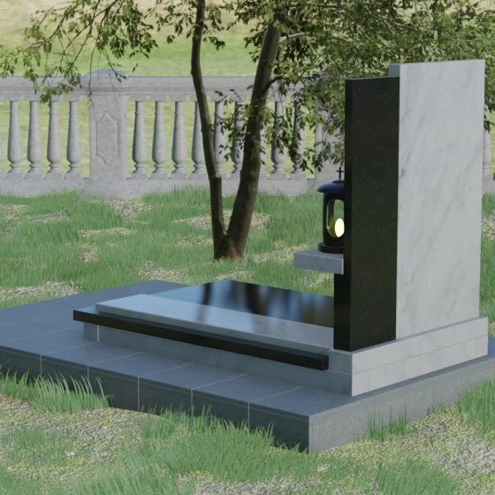 Кому подойдет: Данная модель является универсальной благодаря своему лаконичному и одновременно глубокому дизайну. Она станет достойным выбором как для мужчины, так и для женщины. Строгость линий и золотые акценты подчеркнут статус и мужество, а плавные изгибы верхней грани привнесут нотки женственности и нежности. Этот мемориал выбирают те, кто хочет выразить глубокое уважение и создать на кладбище место, преисполненное достоинства и тишины, где каждый элемент — от лампады до фактуры камня — говорит о вечной любви.