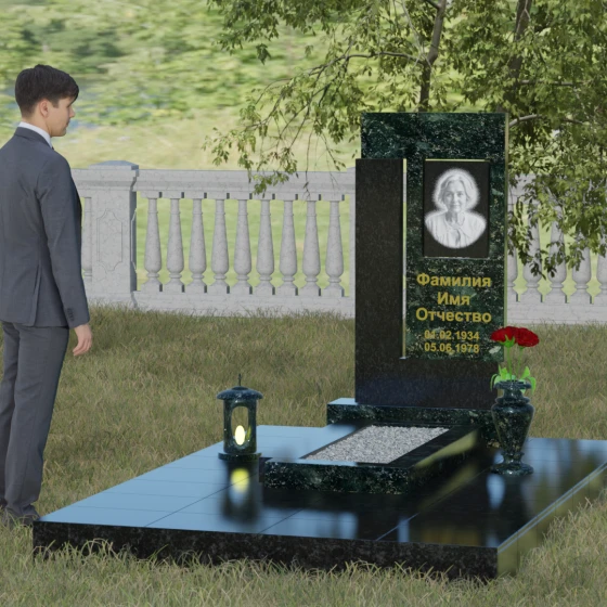 Архитектурное решение стелы предусматривает выделенную зону для портрета, которая может быть оформлена как в виде классической фотокерамики в овальной нише, так и методом художественной лазерной гравировки. Золоченая или вырубленная в камне надпись располагается на контрастном фоне, что обеспечивает отличную читаемость даже на расстоянии. Мы предлагаем этот проект в 8 уникальных цветовых исполнениях, что позволяет наделить мемориал индивидуальным характером. Вы можете выбрать глубокий черный гранит Габбро-диабаз, благородный серо-белый Мансуровский гранит, насыщенный красный Лезниковский, строгий Дымовский, изысканный Блю Перл с его синими искрами, текстурный Амфиболит, зеленый Балтик Грин или белоснежный мрамор Тассо.