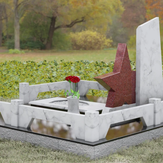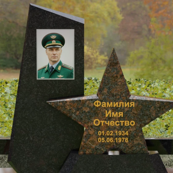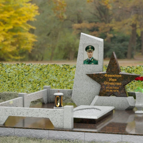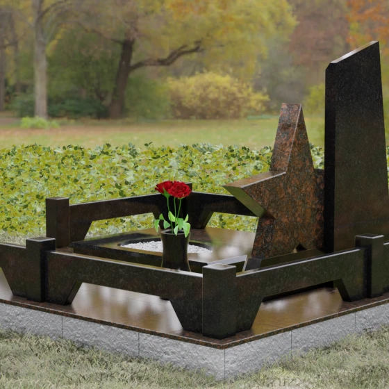 Кому подойдет: Это ритуальное изделие станет достойным выбором для увековечивания памяти военного, ветерана боевых действий или человека, чья профессиональная деятельность была связана с защитой Отечества. Символика звезды в сочетании со строгими линиями олицетворяет мужество, честь и верность идеалам. Благодаря своей величественной форме и архитектурной сложности, такой ансамбль подойдет для установки на почетном месте захоронения главы семьи, подчеркивая его высокий статус и значимость для потомков.