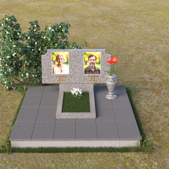 Оформление: Для этой формы стелы идеально подойдет гравировка портретов в овальной или прямоугольной рамке. Имена и даты жизни можно расположить под портретами, используя золотой или серебряный шрифт. Дополнительно можно добавить эпитафию, выражающую любовь и скорбь. Не перегружайте композицию лишними деталями – лаконичность и сдержанность подчеркнут достоинство и элегантность памятника.