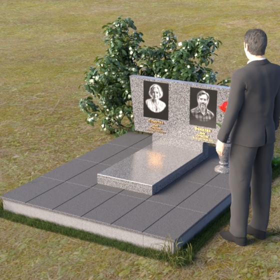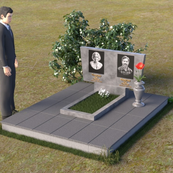 Асимметричная форма стелы не случайна. Она символизирует жизненный путь, который не всегда бывает прямым и предсказуемым. Скошенный угол, напоминающий крыло, несет в себе идею защиты и утешения, а также веру в загробную жизнь. Зеркальная полировка, в свою очередь, отражает свет и символизирует чистоту души и вечную память. Горизонтальная плита, расположенная под стелой, олицетворяет землю, на которой покоится прах усопших, и одновременно служит связующим звеном между земным и небесным мирами. Общий вид памятника создает ощущение покоя и умиротворения, приглашая к тихой молитве и воспоминаниям.