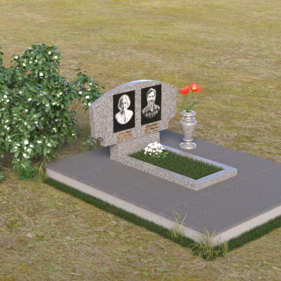 Эта мемориальная композиция, артикул ПГ023, воплощает собой сдержанную элегантность и глубокое уважение к ушедшим. Ее плавные, скруглённые линии словно рассказывают историю жизни, полной взлетов и падений, радостей и печалей, и теперь нашедшей свой покой. Верхняя часть стелы имеет мягкий, дугообразный изгиб, напоминающий о небесном своде, под которым души обретают вечный приют. Зеркальная полировка камня отражает свет, создавая ощущение легкости и воздушности, а контраст с матовой поверхностью гравировки портретов придает изображению глубину и выразительность. Простота формы не отвлекает от главного – светлых образов тех, кто дорог нашему сердцу.