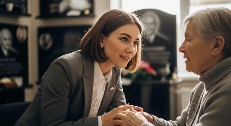 Умение бережно, тактично и терпеливо провести клиента через сложный процесс выбора - это не просто профессиональный навык, а ключевая черта характера нашей команды. Мы работаем с памятью, а это требует особого такта и душевного тепла.
