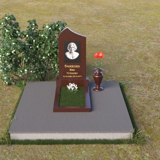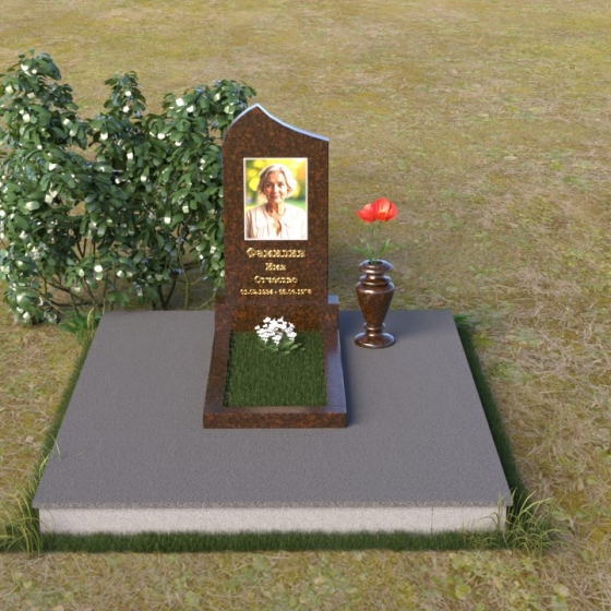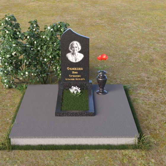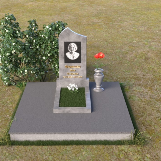 Форма стелы предоставляет широкие возможности для размещения портрета и памятной надписи. Плавные линии арки создают естественную рамку для изображения, подчеркивая его значимость. Портрет может быть выполнен в виде гравировки или фотокерамики, обеспечивая долговечность и четкость изображения. Надпись, выполненная элегантным шрифтом, дополнит композицию, рассказывая о жизни и достижениях усопшего. Ваза, выполненная в едином стиле с памятником, станет достойным дополнением, позволяя возложить цветы в память о близком человеке. Такая форма надгробия гармонично впишется в любое окружение, создавая атмосферу покоя и умиротворения. Этот памятник – не просто знак скорби, а символ вечной памяти и любви, который будет передаваться из поколения в поколение.