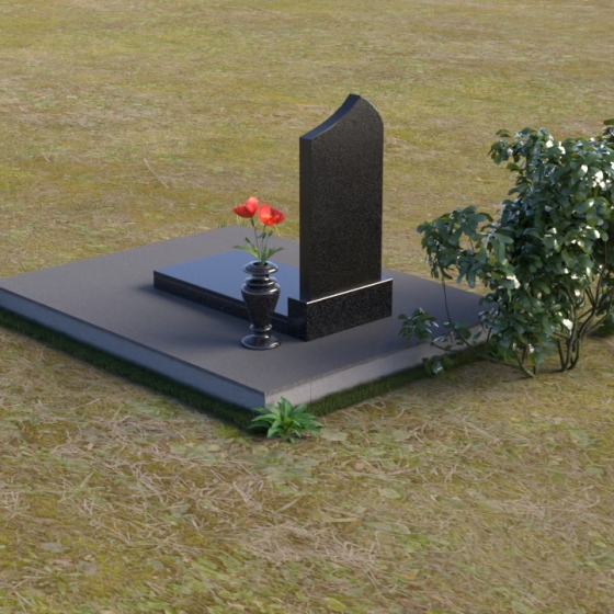 Надгробие из натурального камня (артикул ПВ 049) – это монументальное решение, сочетающее в себе строгость линий и утонченность форм. Стела, выполненная в виде слегка скругленной арки, словно устремляется ввысь, символизируя возвышенность души и вечную память. Верхняя часть памятника деликатно закруглена, смягчая строгость камня и придавая ему благородный вид. Зеркальная полировка черного гранита создает эффект бездонности, отражая небо и окружающий мир, а лаконичная геометрия постамента и надгробной плиты подчеркивает фундаментальность композиции. Контраст между полированной поверхностью и матовым основанием добавляет глубины и объема, делая памятник выразительным и запоминающимся элементом ландшафта.