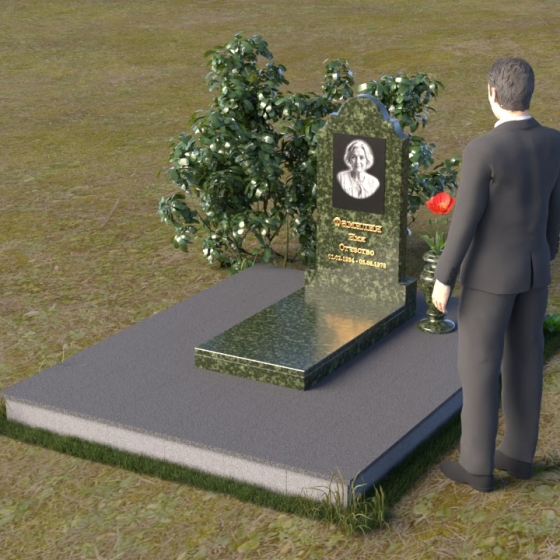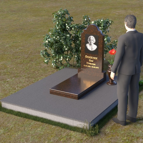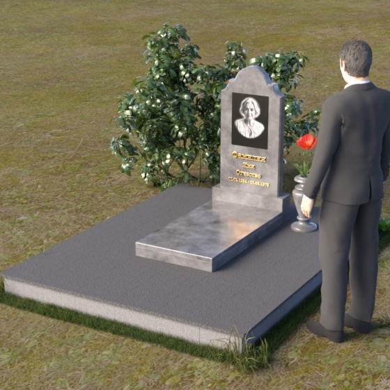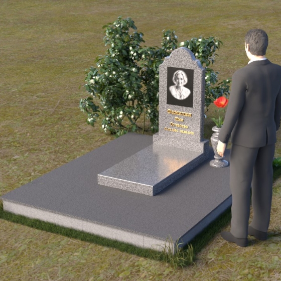 Арка, венчающая стелу, традиционно символизирует переход – врата в иной мир, обещание небесного покоя. Скругленные углы смягчают строгость камня, олицетворяя нежность и заботу, которые мы испытываем к ушедшим. Зеркальная полировка поверхности камня отражает свет, создавая ощущение чистоты и возвышенности. Горизонтальная плита символизирует основательность и стабильность, напоминая о прочной связи между поколениями. Общая форма композиции создает ощущение защиты и умиротворения, словно оберегая память о дорогом человеке от забвения.