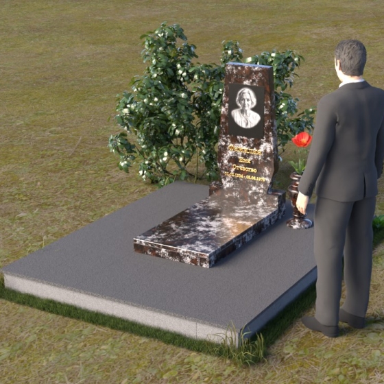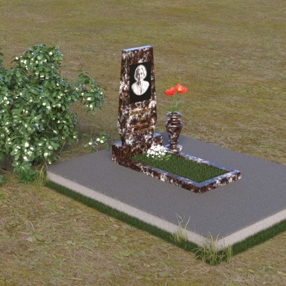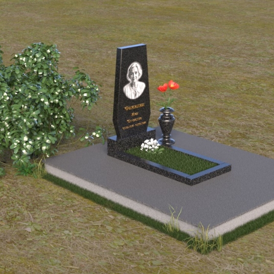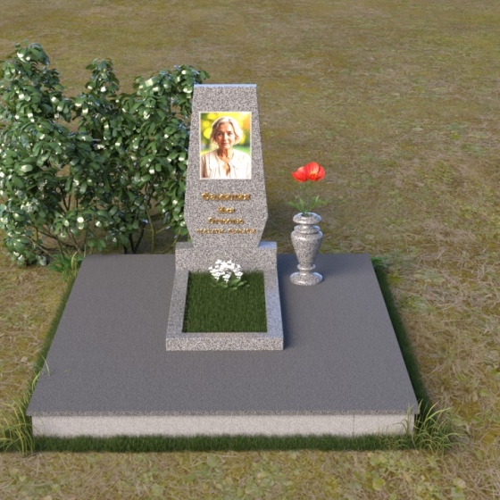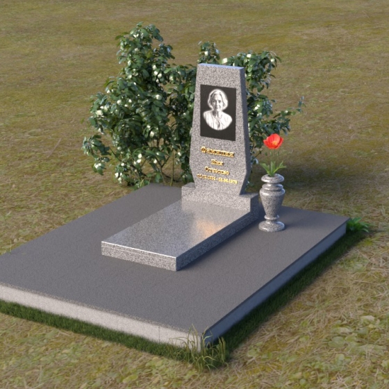 Строгие линии и сдержанная форма этого надгробного сооружения предоставляют широкие возможности для оформления. Портрет усопшего, выполненный в технике гравировки, будет выглядеть особенно выразительно на фоне зеркально отполированного гранита. Золотое начертание имени и дат жизни добавит памятнику торжественности и благородства. Расположение портрета может быть как классическим – в верхней части плиты, так и более оригинальным – смещенным вбок, что позволит добавить дополнительные элементы декора, такие как эпитафия или символические изображения. Небольшой цветник, расположенный в нижней части памятника, станет местом для живых цветов, символизирующих неувядающую память и любовь. Узкая горизонтальная плита, примыкающая к вертикальной части, позволяет разместить свечи или лампадки, создавая атмосферу умиротворения и покоя.