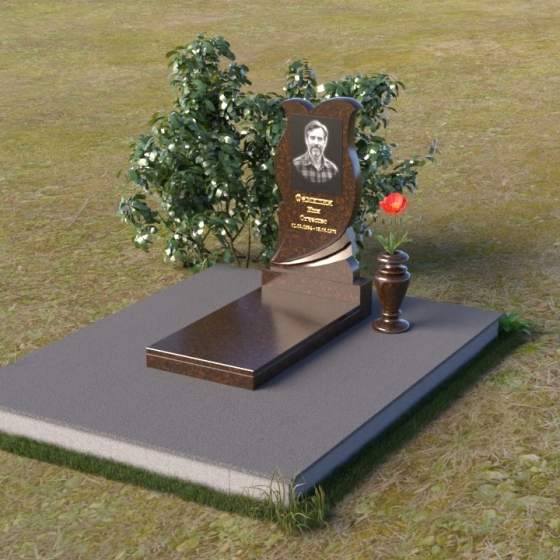 Форма стелы, сочетающая в себе черты сердца и бутона, несет глубокий символический смысл. Сердце – это символ любви, привязанности и памяти, а бутон – символ новой жизни и надежды на воскресение. Плавные линии и закругленные углы символизируют покой и умиротворение, а полированная поверхность – чистоту и светлую память об усопшем. Волна, вырезанная в нижней части стелы, может быть интерпретирована как символ перехода из земного мира в мир иной. В целом, композиция памятника создает ощущение гармонии, покоя и вечности.